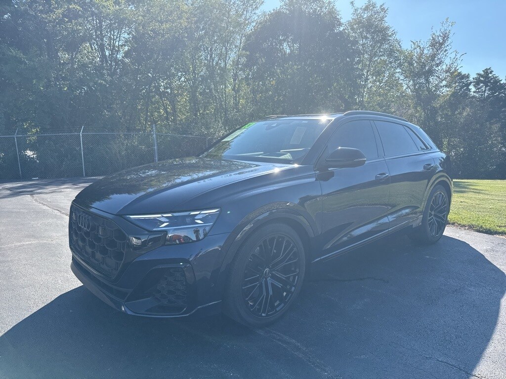 CARFAX One-Owner. Waitomo Blue Metallic 2024 Audi SQ8 4.0T Prestige quattro quattro 8-Speed Automatic 4.0L V8 Turbocharged DOHC 32V LEV3-ULEV125 500hp ** NAVIGATION SYSTEM **, ** ALUMINUM WHEELS **, ** AUDIO PACKAGE **, ** BACKUP CAMERA **, ** BLUETOOTH **, ** CLIMATE PACKAGE **, ** COMFORT PACKAGE **, ** CONVENIENCE LIGHT PACKAGE **, ** CONVENIENCE PACKAGE **, ** LEATHER SEATS **, ** LUXURY PACKAGE **, ** MOONROOF **, ** MULTIMEDIA PACKAGE **, ** PREMIUM PACKAGE **, ** SAFETY PACKAGE **, ** SOUND PACKAGE **, ** SUNROOF/MOONROOF **, ** TECHNOLOGY PACKAGE **, 17 Speakers, ABS brakes, Active Roll Stabilization, Adaptive suspension, Air Conditioning, Animation for Headlights & Taillights, Anthracite Gray Audi Rings, Auto High-beam Headlights, Auto-dimming door mirrors, Auto-dimming Rear-View mirror, Auto-leveling suspension, Automatic temperature control, Bang & Olufsen 3D Premium Sound System, Black Exhaust Tips, Black Exterior Mirror Housings, Black Exterior Trim, Black Optic Package, Black Roof Rails, Brake assist, Bumpers: body-color, Compass, Delay-off headlights, Driver door bin, Driver vanity mirror, Dual front impact airbags, Dual front side impact airbags, Electronic Stability Control, Emergency communication system: Audi connect CARE, Exterior Parking Camera Rear, Four wheel independent suspension, Front anti-roll bar, Front Bucket Seats, Front Center Armrest, Front dual zone A/C, Front fog lights, Front reading lights, Front Seats w/Ventilation, Fully automatic headlights, Garage door transmitter: HomeLink, HD Matrix-Design LED Headlights w/Audi Laser Light, Head-Up Display, Headlight cleaning, Heated door mirrors, Heated front seats, Heated S Sport Seats, Heated steering wheel, Illuminated entry, Intersection Assist, Leather Shift Knob, Leather steering wheel, Low tire pressure warning, Memory seat, Navigation system: Audi MMI Navigation plus with Touch Response, Occupant sensing airbag, OLED Taillights, Outside temperature display, Overhead airbag, Overhead console, Panic alarm, Passenger door bin, Passenger vanity mirror, Power door mirrors, Power driver seat, Power Liftgate, Power moonroof: Panoramic, Power passenger seat, Power Soft-Closing Doors, Power steering, Power windows, Prestige Package, Rain sensing wipers, Rear air conditioning, Rear anti-roll bar, Rear dual zone A/C, Rear fog lights, Rear reading lights, Rear seat center armrest, Rear side impact airbag, Rear window defroster, Rear window wiper, Red Brake Calipers, Remote keyless entry, Remote Park Assist Plus, S Sport Package, Security system, Speed control, Speed-sensing steering, Split folding rear seat, Spoiler, Sport Rear Differential, Steering wheel memory, Steering wheel mounted audio controls, Tachometer, Telescoping steering wheel, Tilt steering wheel, Traction control, Trip computer, Turn signal indicator mirrors, Valcona Leather Seating Surfaces, Variably intermittent wipers, Wheels: 22" 10-Spoke Y-Design Blk Metallic Finish.
