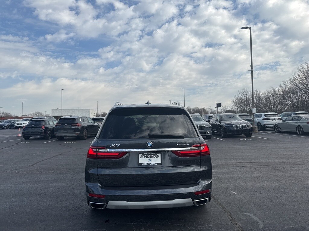 Clean CARFAX. Arctic Gray Metallic 2021 BMW X7 xDrive40i AWD 8-Speed Automatic 3.0L I6 DOHC 24V ** NAVIGATION SYSTEM **, ** ADAPTIVE RIDE PACKAGE **, ** ALUMINUM WHEELS **, ** AMBIENT LIGHT PACKAGE **, ** AUDIO PACKAGE **, ** BACKUP CAMERA **, ** BLUETOOTH **, ** CLIMATE PACKAGE **, ** COMFORT PACKAGE **, ** CONVENIENCE LIGHT PACKAGE **, ** CONVENIENCE PACKAGE **, ** LEATHER SEATS **, ** LUXURY PACKAGE **, ** MOONROOF **, ** MULTIMEDIA PACKAGE **, ** POWER MIRROR PACKAGE **, ** PREMIUM PACKAGE **, ** SAFETY PACKAGE **, ** SOUND PACKAGE **, ** SUNROOF/MOONROOF **, ** TECHNOLOGY PACKAGE **, ** WINTER PACKAGE **, 10 Speakers, 3rd row seats: split-bench, 5-Zone Automatic Climate Control, ABS brakes, Active Comfort Drive w/Road Preview, Active Driving Assistant Pro, Air Conditioning, Aluminum Running Boards, Anthracite Alcantara Headliner, Apple CarPlay & Android Auto Compatibility, Apple CarPlay Compatibility, Auto High-beam Headlights, Auto tilt-away steering wheel, Auto-dimming door mirrors, Auto-dimming Rear-View mirror, Auto-leveling suspension, Automatic temperature control, Brake assist, Bumpers: body-color, Cold Weather Package, Compass, Delay-off headlights, Drive Recorder, Driver door bin, Driver vanity mirror, Driving Assistance Professional Package, Dual front impact airbags, Dual front side impact airbags, Dynamic Handling Package (DISC), Electronic Stability Control, Executive Package (DISC), Extended Traffic Jam Assistant, Exterior Parking Camera Rear, Four wheel independent suspension, Front & Rear Heated Seats, Front anti-roll bar, Front Bucket Seats, Front Center Armrest, Front dual zone A/C, Front fog lights, Front Massaging Seats, Front reading lights, Front Ventilated Seats, Fully automatic headlights, Garage door transmitter, Genuine wood console insert, Genuine wood dashboard insert, Genuine wood door panel insert, Gesture Control, Glass Controls, harman/kardon Surround Sound System, Head restraints memory, Head-Up Display, Heated & Cooled Cup Holders, Heated door mirrors, Heated front seats, Heated Sport Seats, Heated steering wheel, Illuminated entry, Integral Active Steering (DISC), Knee airbag, Live Cockpit Pro w/Navi, Low tire pressure warning, Lumbar Support, Luxury Seating Package, M Sport Brakes w/Blue Calipers, Memory seat, Multi-Contour Seats, Navigation System, Occupant sensing airbag, Outside temperature display, Overhead airbag, Panic alarm, Panoramic Sky Lounge LED Roof, Parking Assistance Package, Parking Assistant Plus, Passenger vanity mirror, Power adjustable front head restraints, Power door mirrors, Power driver seat, Power Front Seats, Power moonroof, Power passenger seat, Power steering, Power windows, Rain sensing wipers, Rear air conditioning, Rear anti-roll bar, Rear dual zone A/C, Rear Electric Side Window Shades, Rear reading lights, Rear seat center armrest, Rear window defroster, Rear window wiper, Rear-View Camera, Reclining 3rd row seat, Remote keyless entry, Roof rack: rails only, Second-Row Captain's Chairs, Security system, Soft-Close Automatic Doors, Speed control, Speed-sensing steering, Speed-Sensitive Wipers, Split folding rear seat, Spoiler, Sport steering wheel, Steering wheel memory, Steering wheel mounted audio controls, Surround View w/3D View, Tachometer, Telescoping steering wheel, Tilt steering wheel, Traction control, Trip computer, Turn signal indicator mirrors, Variably intermittent wipers, Vernasca Leather Upholstery, Wheels: 21" x 9.5" Y-Spoke Bi-Color.