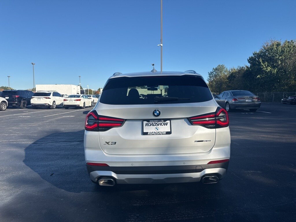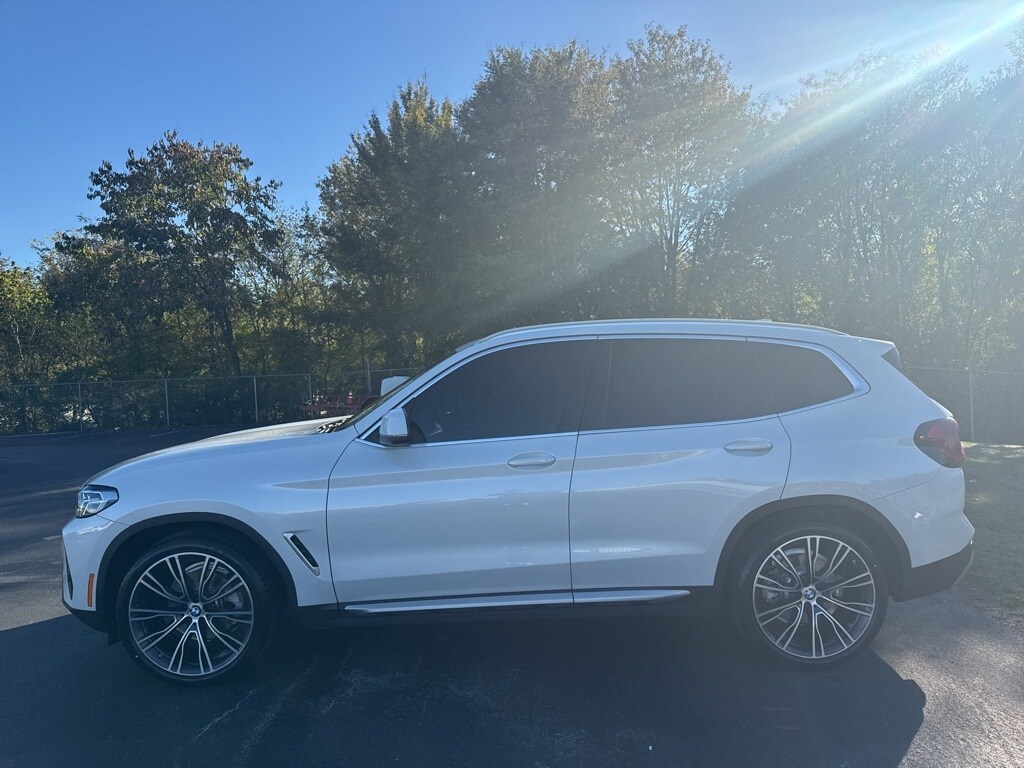 Clean CARFAX. Mineral White Metallic 2022 BMW X3 sDrive30i RWD 8-Speed Automatic Sport 2.0L I4 TwinPower Turbo ** NAVIGATION SYSTEM **, ** NEW TIRES **, ** ALUMINUM WHEELS **, ** AMBIENT LIGHT PACKAGE **, ** BACKUP CAMERA **, ** BLUETOOTH **, ** CONVENIENCE LIGHT PACKAGE **, ** CONVENIENCE PACKAGE **, ** MOONROOF **, ** SOUND PACKAGE **, 8-Speed Automatic Sport, 12 Speakers, ABS brakes, Air Conditioning, Apple CarPlay & Android Auto Compatibility, Auto-dimming door mirrors, Auto-dimming Rear-View mirror, Automatic temperature control, BMW Assist eCall, BMW TeleServices, Brake assist, Bumpers: body-color, Comfort Access Keyless Entry, Connected Package Pro, ConnectedDrive Services, Convenience Package w/ZPA, Delay-off headlights, Driver door bin, Driver vanity mirror, Dual front impact airbags, Dual front side impact airbags, Electronic Stability Control, Emergency communication system: BMW Assist eCall, Enhanced Bluetooth, Exterior Parking Camera Rear, Fine Wood Open-Pored Ash Grain Trim, Four wheel independent suspension, Front anti-roll bar, Front Bucket Seats, Front Center Armrest, Front dual zone A/C, Front reading lights, Fully automatic headlights, Garage door transmitter, Genuine wood dashboard insert, Genuine wood door panel insert, Heated door mirrors, Heated Front Seats, Hi-Fi Sound System, Illuminated entry, Knee airbag, Live Cockpit Pro w/Navigation, Low tire pressure warning, Lumbar Support, Memory seat, Navigation, Navigation System, Occupant sensing airbag, Outside temperature display, Overhead airbag, Panic alarm, Panoramic Moonroof (ZPA), Passenger door bin, Passenger vanity mirror, Perforated SensaTec Upholstery, Power door mirrors, Power driver seat, Power Front Seats, Power Liftgate, Power passenger seat, Power steering, Power windows, Rain sensing wipers, Rear air conditioning, Rear anti-roll bar, Rear reading lights, Rear seat center armrest, Rear window defroster, Rear window wiper, Remote Engine Start, Remote keyless entry, Roof rack: rails only, Security system, Speed control, Speed-sensing steering, Speed-Sensitive Wipers, Split folding rear seat, Spoiler, Sport steering wheel, Steering wheel mounted audio controls, Tachometer, Telescoping steering wheel, Tilt steering wheel, Traction control, Trip computer, Turn signal indicator mirrors, Variably intermittent wipers, Wheels: 21" x 8.5" Fr & 21" x 9.5" Rr (Style 726i), WiFi Hotspot.