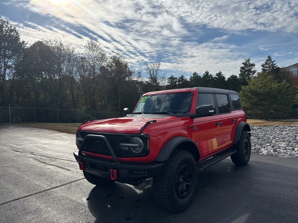 CARFAX One-Owner. Clean CARFAX. Race Red 2024 Ford Bronco Wildtrak 4WD 10-Speed Automatic 2.7L EcoBoost V6 ** NAVIGATION SYSTEM **, ** ALUMINUM WHEELS **, ** AMBIENT LIGHT PACKAGE **, ** AUDIO PACKAGE **, ** BACKUP CAMERA **, ** BLUETOOTH **, ** CONVENIENCE LIGHT PACKAGE **, ** CONVENIENCE PACKAGE **, ** REMOTE START **, ** SAFETY PACKAGE **, ** SOUND PACKAGE **, 10 Speakers w/Subwoofer, 360-Degree Camera, ABS brakes, Adaptive Cruise Control, Additional Sound Deadening, Air Conditioning, Auto High-beam Headlights, Auto-dimming Rear-View mirror, Automatic temperature control, Brake assist, Brush Guard, Carbonized Gray Molded-In-Color Hard Top, Compass, Connected Navigation, Delay-off headlights, Driver door bin, Driver vanity mirror, Dual front impact airbags, Dual front side impact airbags, Electronic Stability Control, Emergency communication system: 911 Assist, Equipment Group 354A High/Lux Package, Evasive Steering Assist, Exterior Parking Camera Rear, Front & Rear Floor Liners w/o Carpet Floor Mats, Front anti-roll bar, Front Bucket Seats, Front Center Armrest, Front dual zone A/C, Front fog lights, Front License Plate Bracket, Front Parking Sensors, Front reading lights, Front Row Top Panels Storage Bag, Front wheel independent suspension, Fully automatic headlights, Hard Top Sound Deadening Headliner, Heated door mirrors, Heated front seats, Heated Leather-Trimmed/Vinyl Bucket Seats, Heated Steering Wheel, Illuminated entry, Information on Demand Panel, Integrated roll-over protection, Leather Shift Knob, Low tire pressure warning, Navigation system: Connected Navigation, Occupant sensing airbag, Outside temperature display, Overhead airbag, Overhead console, Panic alarm, Passenger door bin, Passenger vanity mirror, Power door mirrors, Power steering, Power windows, Radio: B&O Sound System by Bang & Olufsen, Rear-Window Defroster & Washer, Remote keyless entry, Security system, Sideview Mirrors, Speed control, Split folding rear seat, Steering wheel mounted audio controls, Tachometer, Telescoping steering wheel, Tilt steering wheel, Traction control, Trip computer, Universal Garage Door Opener, Voltmeter, Wheels: 17" Black High Gloss-Painted Aluminum, Wireless Charging Pad.